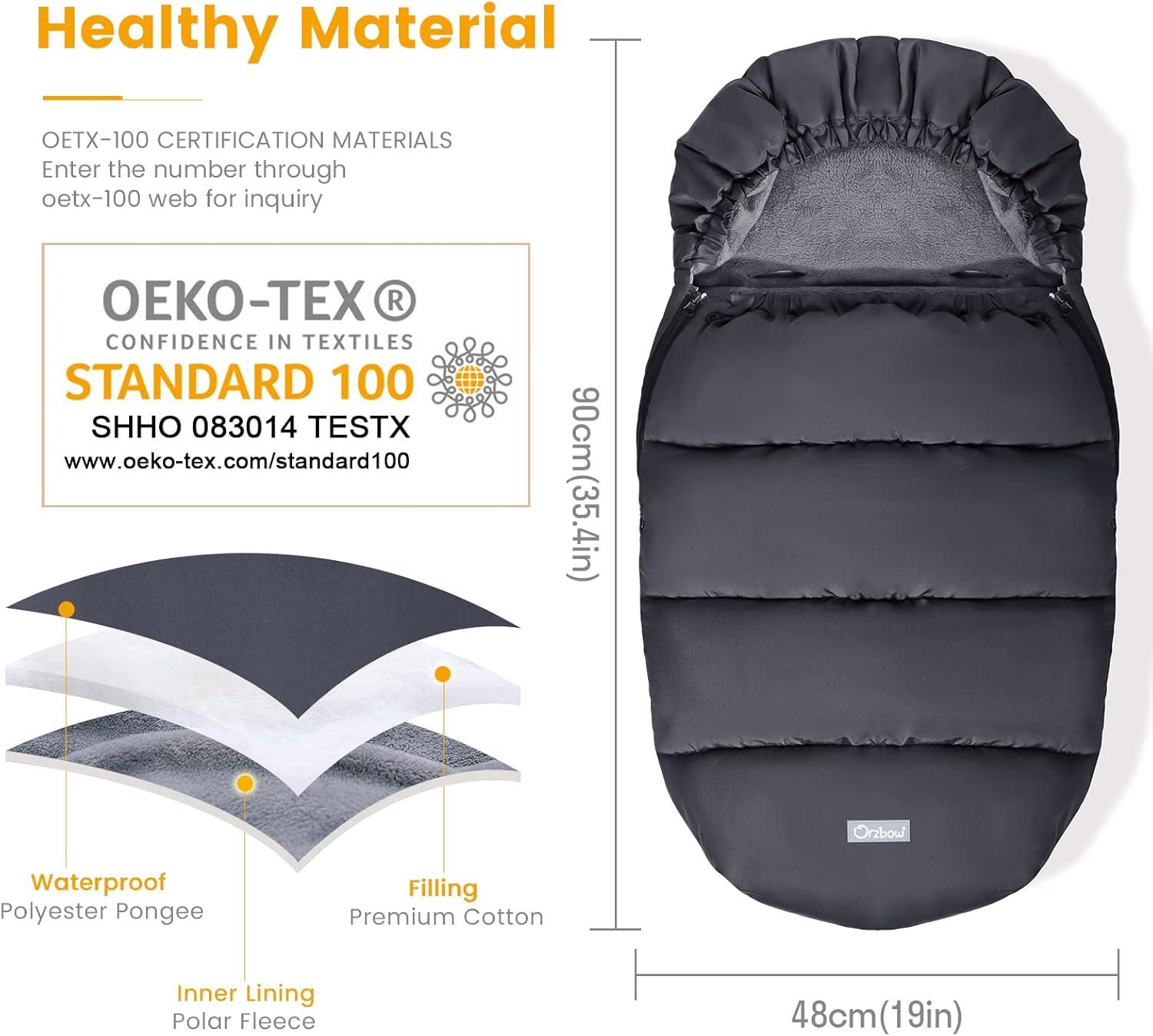 🔥【EXTRA THICK FILLING】:Applying “Down Filling Process”,Orzbow Footmuff is much thicker than other footmuffs and got better thermal insulation performance,making your babies more comfortable and warmer in this winter.