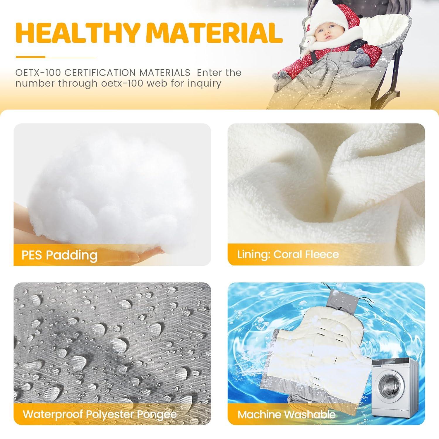 Gentle Weather Protection: OEKO-TEX certified waterproof pongee with triple-layer insulation (cotton filling + coral fleece lining). 46.02″x17.32″ fits most strollers with full coverage, no movement restriction. Keeps babies warm and cozy in cold weather